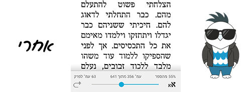 - מחקנו גם את האייקון שלצד "עמ' שנותרו לפרק" (אל דאגה, הוא עדיין מופיע כשבאמת צריך אותו – כשהברים נעלמים).