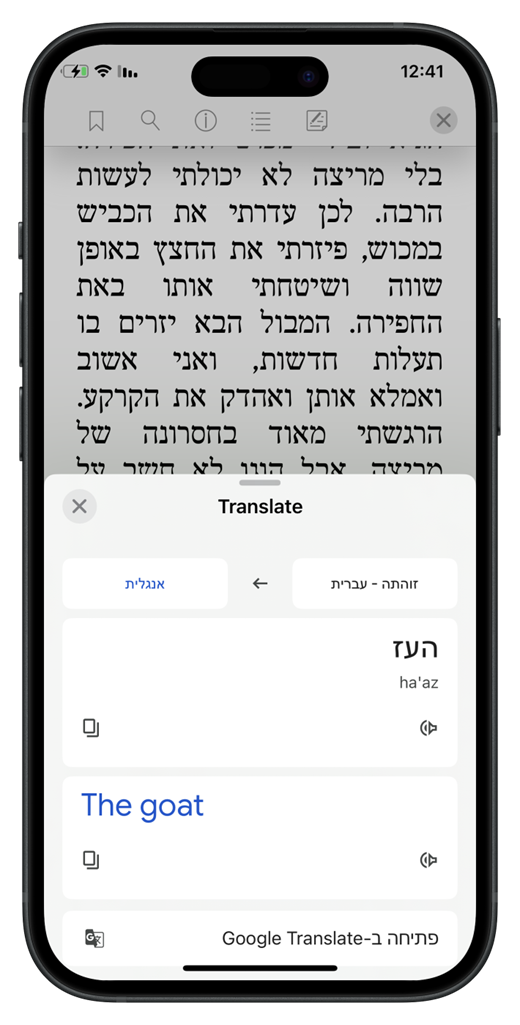 השינוי המבורך אפשר לנו לשלב את השירות הפופולרי של גוגל טרנסלייט ולקבל תרגום מובנה באפליקציה, במקום התרגום החלקי דרך חלונית המחקר כפי שהיה עד כה.