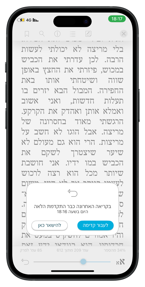 ⬅ כאשר המיקום שנשמר אצלנו מתקדם יותר מהמיקום הנוכחי שלכם בספר, ואז סביר להניח שתרצו לעבור קדימה:
