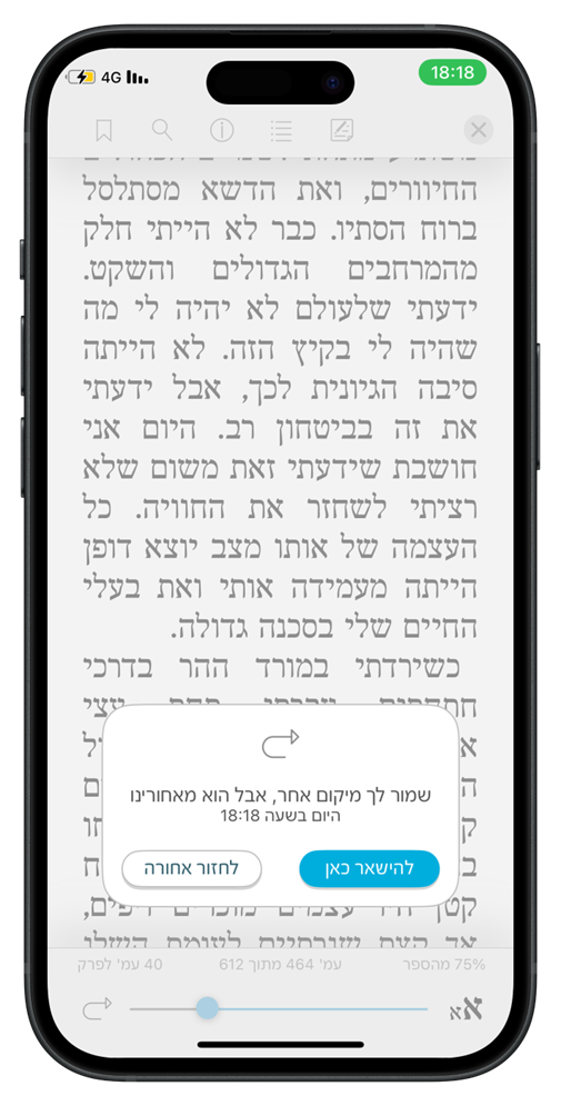כשקוראים בכמה מכשירים במקביל, לא תמיד זוכרים באיזה מכשיר עצרנו את הקריאה ומאיפה בדיוק אנחנו רוצים להמשיך – אולי לא היה אינטרנט, אולי נרדמנו באמצע – הרבה דברים יכולים לקרות.