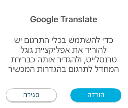 לאחר מכן, כל לחיצה על ״תרגום״ תציג את החלונית הבאה:
